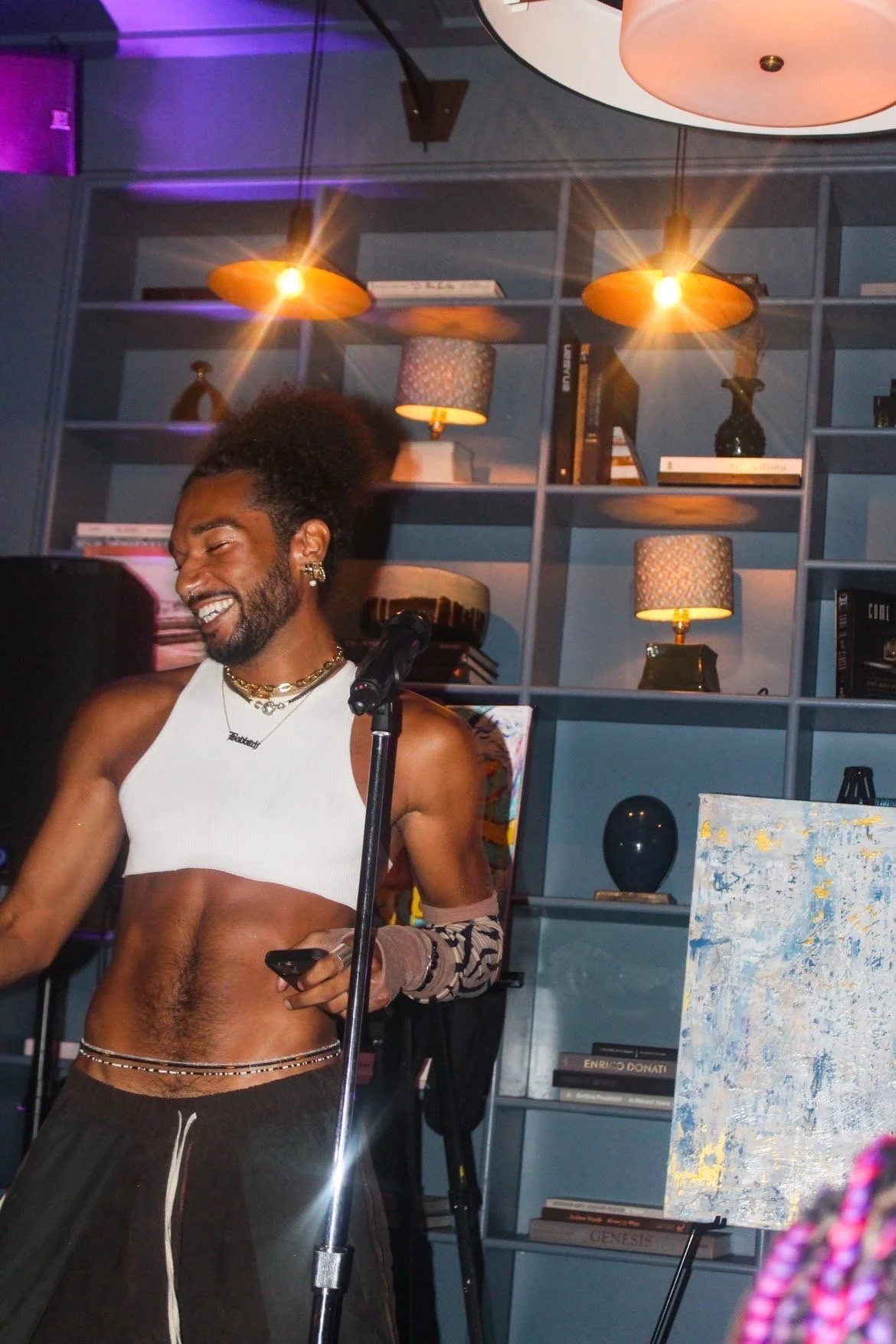*hi y’all, my name is laquann dawson, i’m an artist who spends 90% of his time fantasizing and trying to bring those fantasies into real life. i’m a capricorn with a venus in scorpio. i’m a sabrina claudio gay which means i’m always in love. i’m delusional, romantic, hella horny and i’ll rub his feet whenever he asks me to. my friends said i wasn’t allowed to ride my bike here because i keep on falling on my ass, so if anybody is tryna uber me home after this, that’d be great. imma read a few poems cause i’ve got some things to get off my chest. thank you collette and funky reggae house party for offering me this space. it’s been a while since i’ve read my shit in front of folks who don’t regularly clock my poet’s voice. thank y’all for being here. thank y’all for having me. this first one is called:
